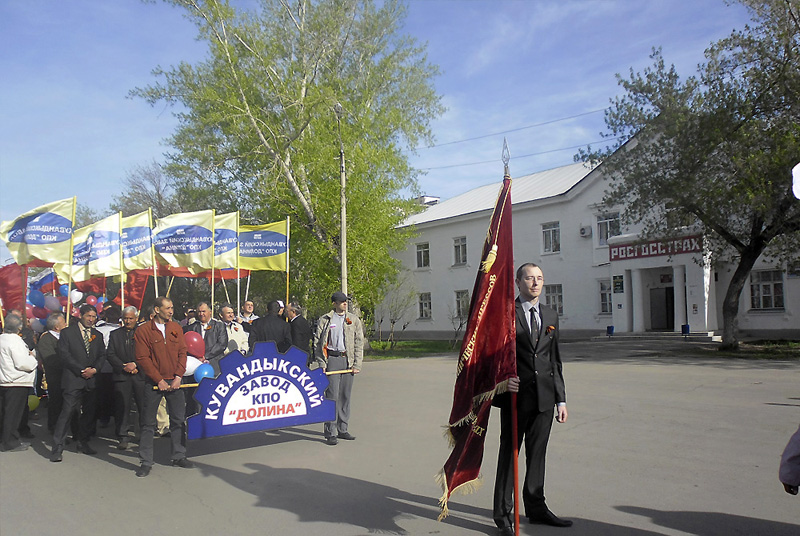 На богослужении помимо прихожан присутствовали казаки из станичных обществ. После Литургии были отслужены благодарственный молебен о даровании Победы и лития о погибших воинах. Затем по благословению благочинного Кувандыкского и Медногорского округов, настоятеля Покровского храма протоиерея Симеона Антипова приход дружно принял участие в праздничном параде, посвященном Дню Победы.