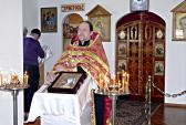 По окончании панихиды отец Герман обратился к прихожанам с проповедью, по окончании которой провел чин освящения новой храмовой иконы – святого преподобного Сергия Радонежского.