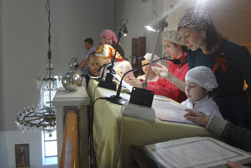 В течение всего учебного года ребята на занятиях по церковному пению разучивали песнопения Божественной литургии. В последний воскресный день детский церковный хор в верхнем храме собора исполнял песнопения и молитвы за богослужением. Родители и прихожане смогли услышать, чему за этот учебный год научились дети.
