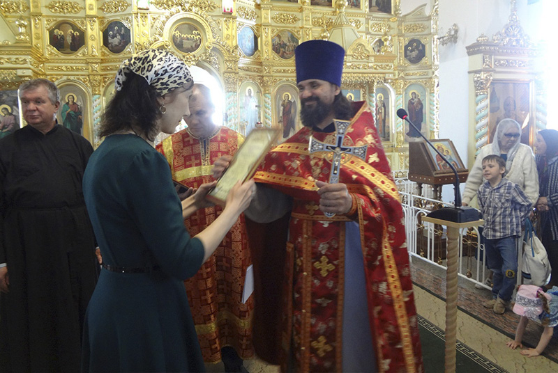 По окончании богослужения настоятель храма протоиерей Сергий Кваша вместе с преподавательским составом выделили тех ребят, которые активно участвовали в жизни школы в течение учебного года. Батюшка также отметил работу педагогов, которые в этом году усердно потрудились в деле подготовки к мероприятиям, проводимым в школе. Самым энергичным воспитанникам и наставникам были вручены благодарственные письма.
