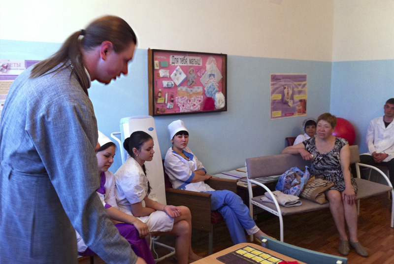 МЕДНОГОРСК. 15 мая 2014 г. Клирик храма святителя Николая Чудотворца города Медногорска (микрорайон «Южный») иерей Александр Курсаков посетил городскую женскую консультацию, где провел беседу с врачами, студентами Медногорского медицинского колледжа и пациентами.