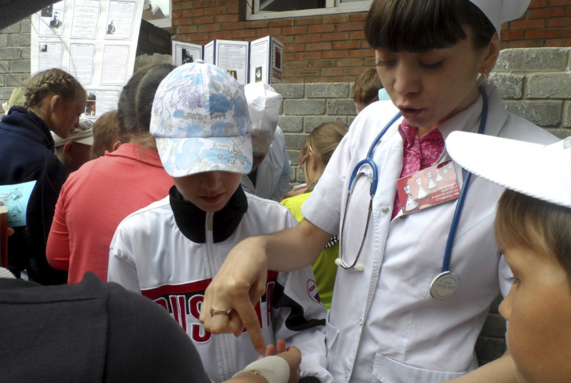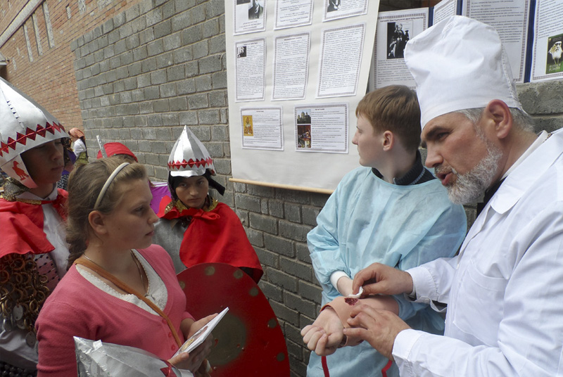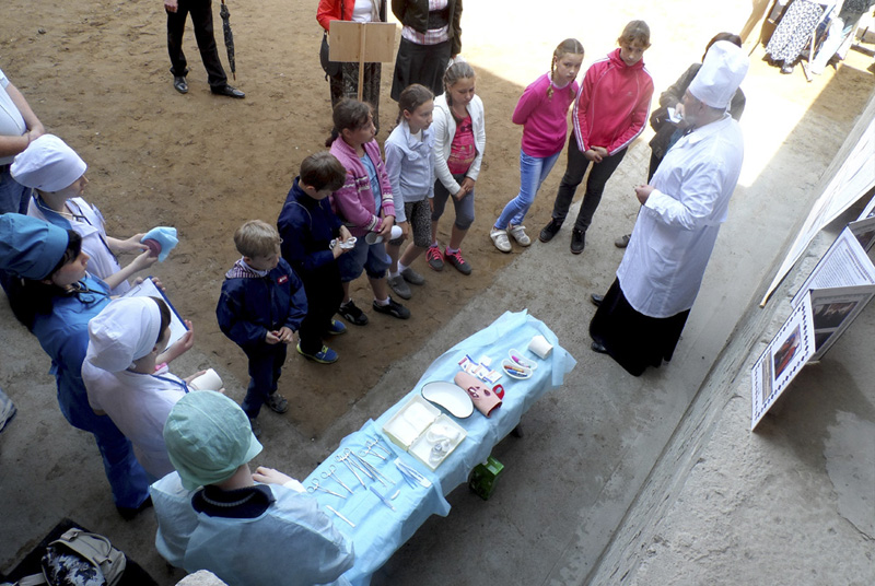 ГАЙ-АДАМОВКА-ОРСК. 18 мая 2014 г. На объединенном уроке-игре «Жить – Богу служить», который недавно прошел в г. Орске, приходы храмов святых апостолов Петра и Павла г.Гая и Покрова Пресвятой Богородицы п.Адамовки объединили свои усилия в презентации профессии медика.