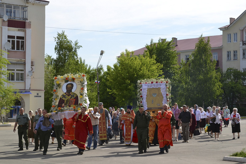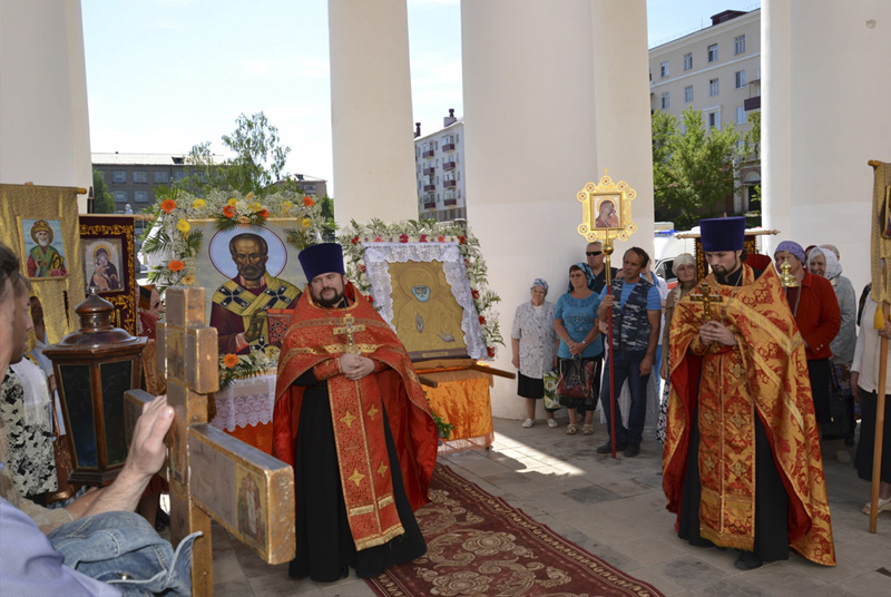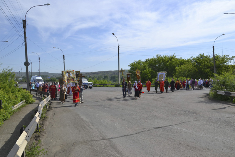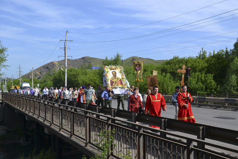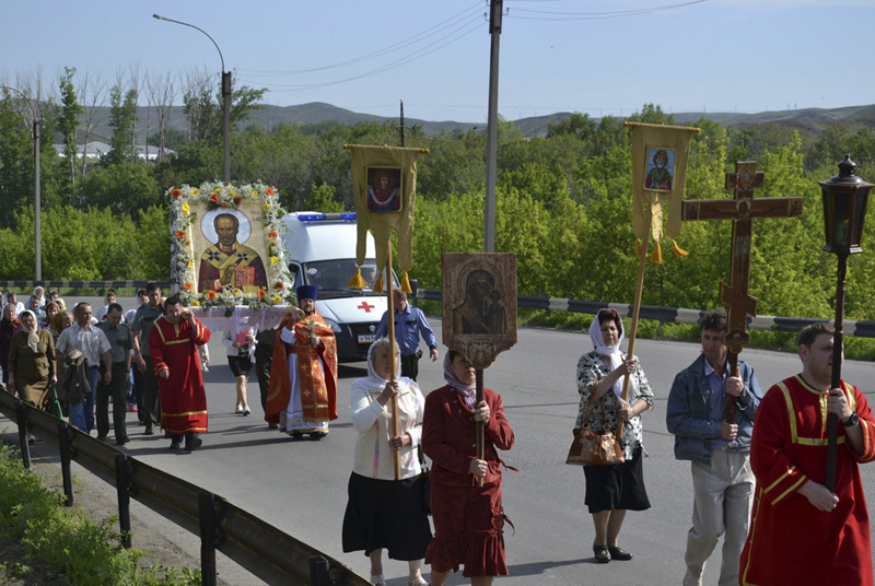 По окончании Божественной литургии состоялся ставший уже традиционным крестный ход с главной храмовой святыней - иконой святителя Николая Чудотворца. Праздничное шествие проследовало по улицам посёлка Заречного и города Медногорска. На улице Горького произошла радостная встреча со вторым крестным ходом, который вышел из храма святителя Николая Чудотворца микрорайона «Южный».
