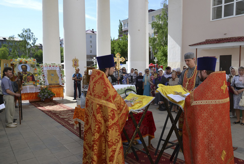Шествие духовенства и верующих остановилось на центральной площади города, у городского Дома культуры «Металлург», где был отслужен молебен с водоосвящением и акафистом святителю Николаю Чудотворцу. По окончании молебна настоятели храмов поздравили всех присутствующих с днем чествования святителя Николая, поделились пасхальной радостью престольного дня и пожелали всем непрестанного заступничества угодника Божьего.