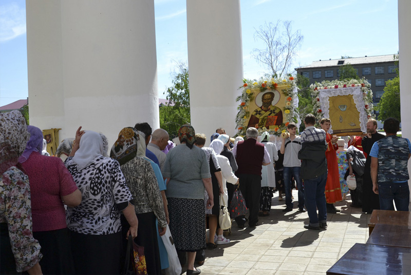 Медногорцы очень почитают Николая Угодника. Вот уже почти семьдесят лет в храме поселка Заречного молятся у престола, освященного в честь святого. Особой радостью для прихожан в этот день было помазание святым миром от мощей святителя Николая, привезенным настоятелем из города Бари.