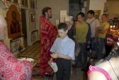 Богослужение провёл настоятель храма святых апостолов Петра и Павла иерей Виталий Кудрявцев.