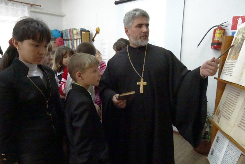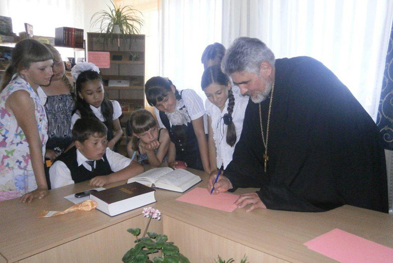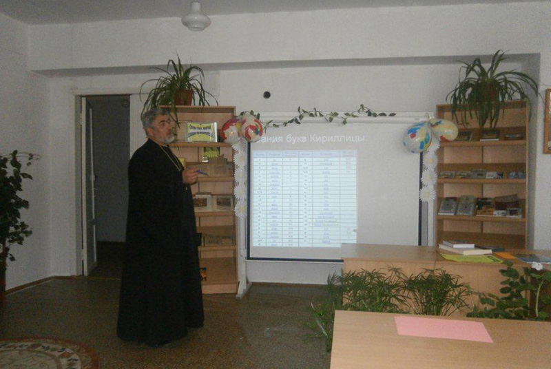 АДАМОВКА-ОБИЛЬНЫЙ-ШИЛЬДА. 24 мая 2014 г. Благочинный Адамовского округа, настоятель храма Покрова Пресвятой Богородицы п. Адамовки иерей Вячеслав Кочкин провел ряд мероприятий, посвященных Дню славянской письменности и культуры.