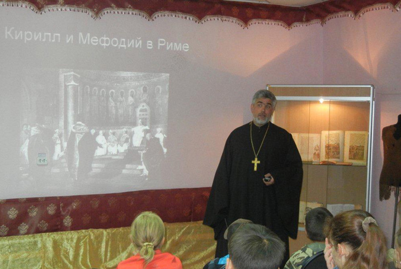 В субботу в России отмечался день славянской письменности и культуры. Праздник приурочен к дню памяти святых равноапостольных Кирилла и Мефодия, просветителей словенских. Именно они создали для славянского мира письменность и просветили светом Евангелия на родном языке, определив направление развития целых народов на тысячелетия. С 20 по 24 мая благочинный Адамовского округа иерей Вячеслав Кочкин прочёл ряд лекций, посвящённых наследию святых Кирилла и Мефодия. На протяжении недели священник встречался со слушателями в районной детской библиотеке п. Адамовки, районном народном музее п. Адамовки, Доме культуры п. Обильного, районной библиотеке п. Адамовки, кинотеатре «Восход» п. Адамовки, модульной библиотеке п. Шильды. Встречи сопровождались показом слайдов мультимедиа. Традиционно вызывала интерес книжная выставка. В неё вошли фотокопии рукописных книг: Киевская псалтырь, «Слова о Куликовой битве», печатные книги различных столетий. Более 200 слушателей смогли подробнее познакомиться с развитием письменности и книгопечатания на Руси.