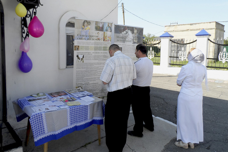 Информационные стенды о традиционных семейных ценностях: любви, воспитании детей, отцовстве и материнстве – никого не оставили равнодушным. Буклеты, брошюры и диски обращали внимание взрослых к проблеме сохранения жизни нерожденных детей.