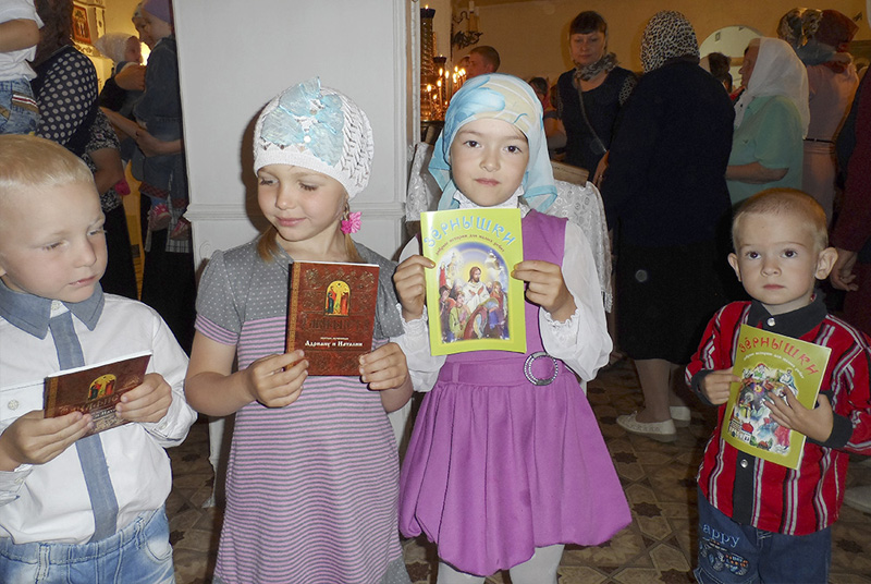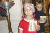 Далее батюшка преподал благословение молящимся и в память о событии каждый юный прихожанин получил детскую православную книгу.