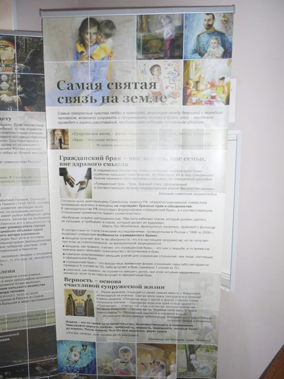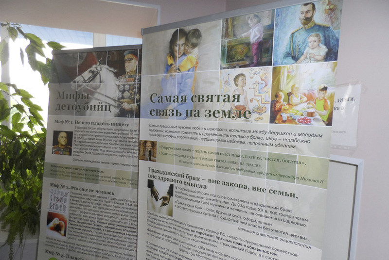 Часть стендов рассказывает о традиционных семейных ценностях: любви, воспитании детей, отцовстве и материнстве. Другая часть повествует о проблеме искусственного прерывания беременности: истории отношения человечества к данному виду операции, причинах ее легализации, причинах искусственного прывания беременности в современном обществе, способах умерщвления неродившихся младенцев, недопустимости и вреде контрацепции, последствиях таких операции для здоровья женщин и многом другом.