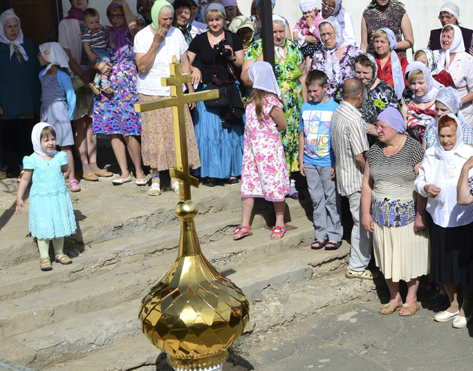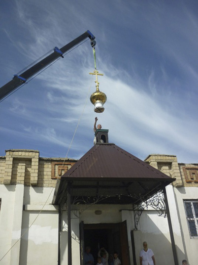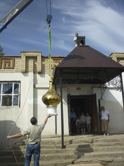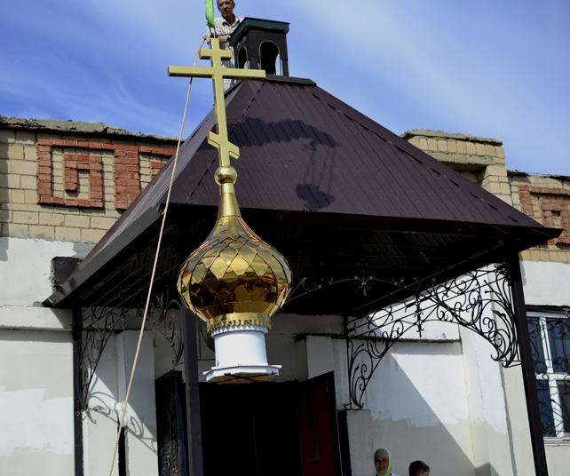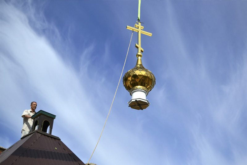 Но и еще одно событие произошло в этот день. С помощью Божией, благодаря щедрому дару прихожанина, здание храма обрело золотой купол и крест.