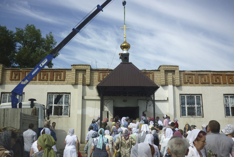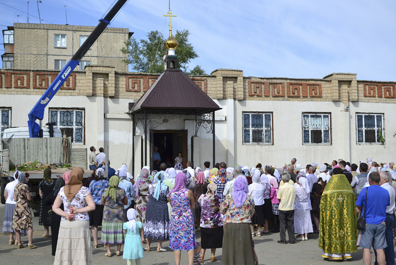 Храм является пристройкой к пятиэтажному дому и до этого дня терялся в жилом массиве. Раньше над крышей стоял временный кованый крест, но и его было сложно различить. Теперь, обретя золотую маковку и крест, храм преобразился и стал различим со стороны строящегося женского монастыря во имя Иверской иконы Богородицы.