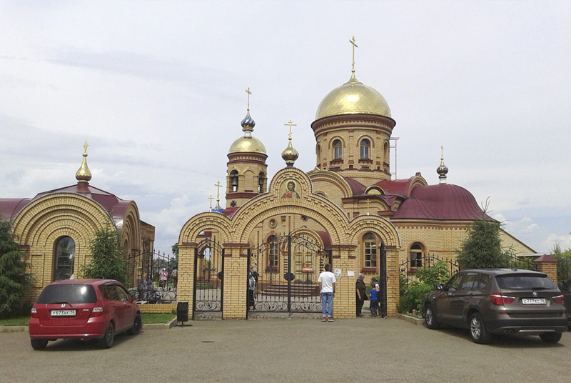 Издалека паломники заметили сверкающие купола храма. Это был храм Матронушки Московской в селе Майорском Октябрьского района Оренбургской области. Радушно встретил паломников настоятель храма иерей Леонид Кудрячев. В этом маленьком, но многолюдном храме приложились к иконе блаженной Матроны, отслужили молебен, получили в подарок лепестки роз, набрали святой воды.