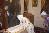 В храмах были совершены Божественная литургия и молебны с водоосвящением. Верующие жители с. Хабарного, а также прихожане и больные, находящиеся на лечении в городской больнице Новотроицка, смогли приложиться к иконе и помолиться о своих нуждах.