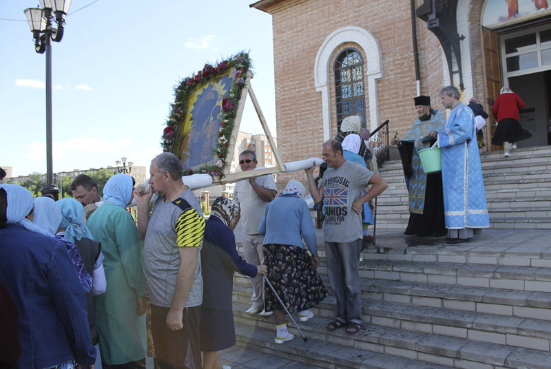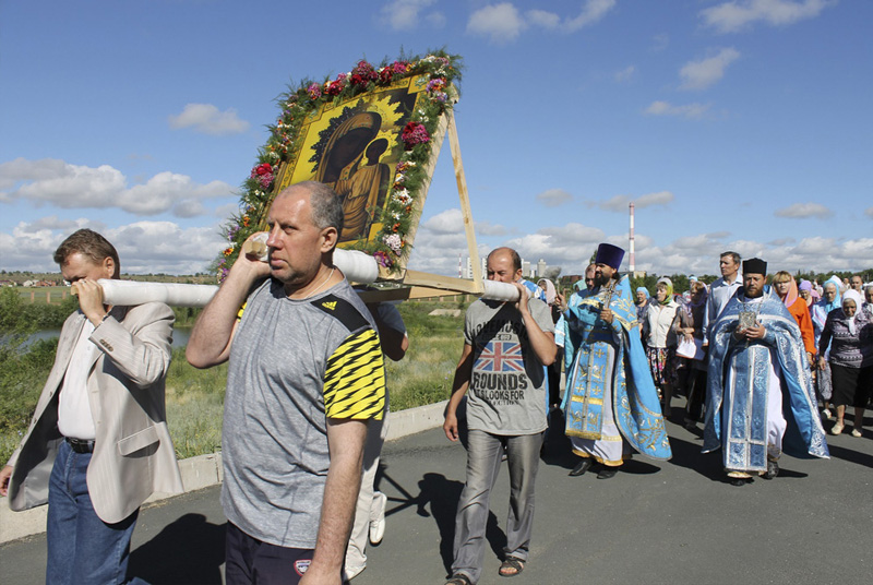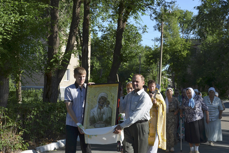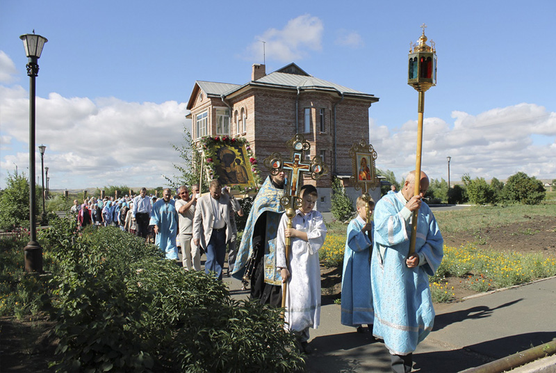 НОВОТРОИЦК. 20 июня 2014 г. В день праздника почитаемой в Оренбургском крае иконы Божией Матери «Табынская», что бывает в девятую пятницу по Пасхе, традиционно проходят особо торжественные службы во всех храмах. Так было и в храмах Новотроицкого благочиния.