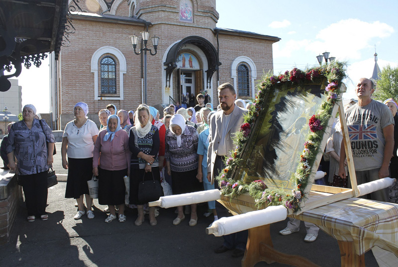 Затем с проповедью к верующим обратился протоиерей Сергий Кваша. Он отметил, что эта икона прославилась многими чудесами и потому издавна была почитаема в Оренбургском крае. Настоятель поздравил всех присутствующих с праздником и пожелал крепости телесной и духовной.