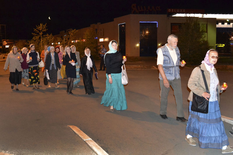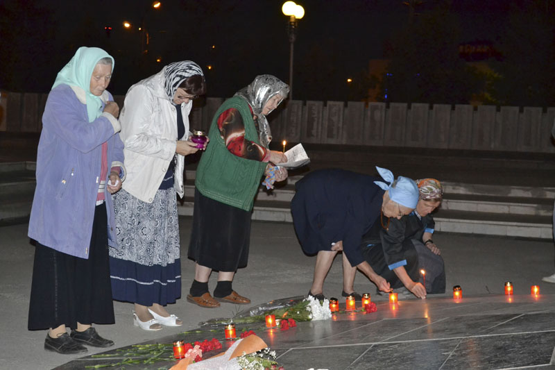 В кафедральном соборе во имя св. вмч. Георгия Победоносца после ночной заупокойной Божественной литургии был совершен крестный ход к Скверу Славы. В нем приняли участие десятки прихожан, а также духовенство епархии. Участники шествия несли свечи, зажженные в храме как символ вечной памяти о героическом подвиге погибших.