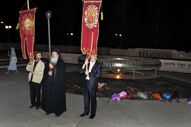 Затем участники крестного хода установили «свечи памяти» к Вечному огню.