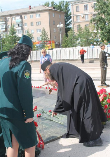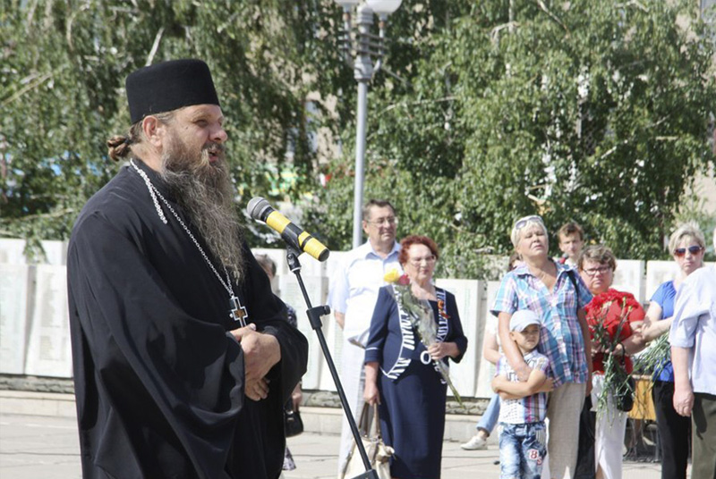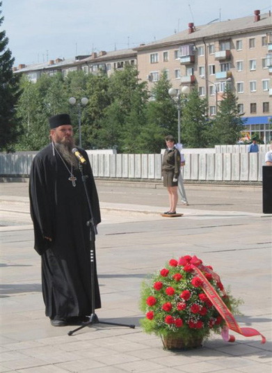 ОРСК. 22 июня 2014 г. Секретарь Орской епархии, настоятель кафедрального собора св. вмч. и Победоносца Георгия г. Орска, духовник строящегося женского монастыря иконы Божией Матери «Иверская» г. Орска протоиерей Сергий Баранов принял участие в мероприятиях, посвященных Дню памяти и скорби.