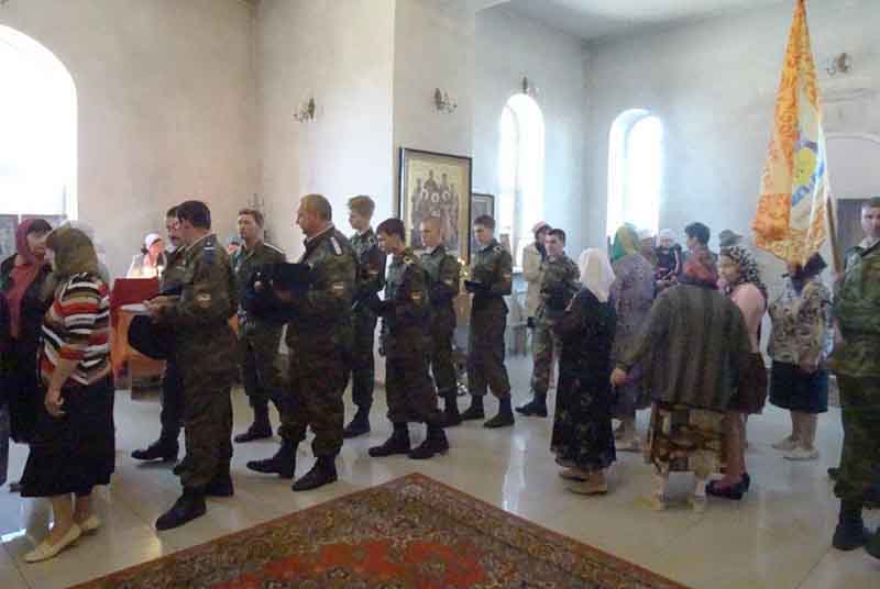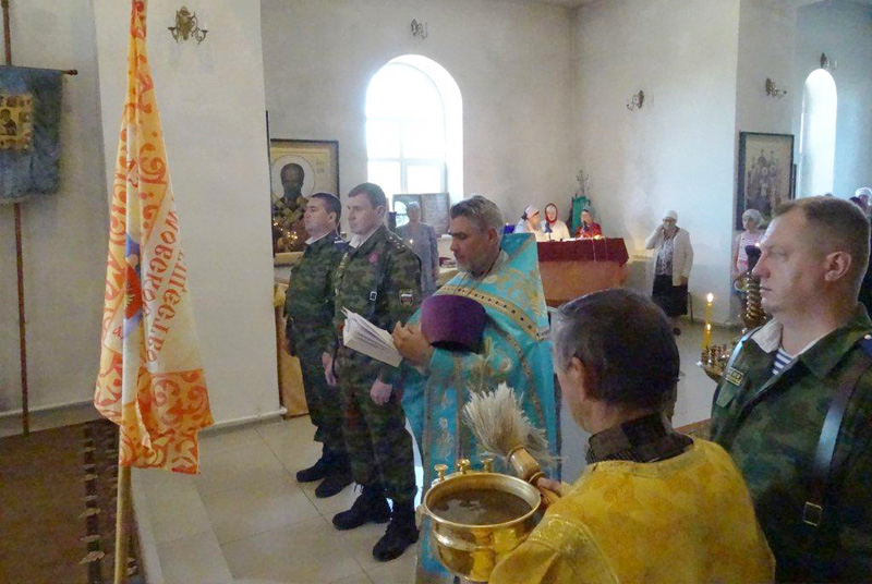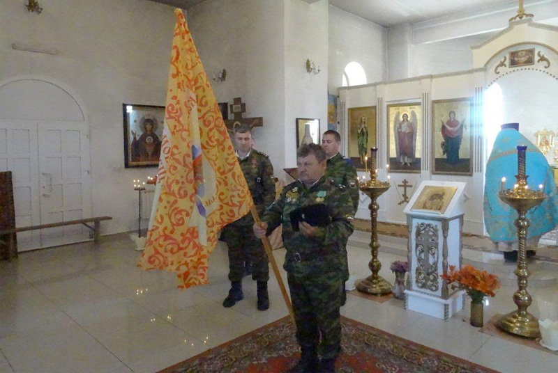 АДАМОВКА. 20 июня 2014 г. В день празднования иконы Божией Матери «Табынская» - покровительницы Оренбургского края и казачества - после Божественной литургии в храме Покрова Пресвятой Богородицы посёлка Адамовки состоялось освящение знамени Адамовского хуторского казачьего общества.