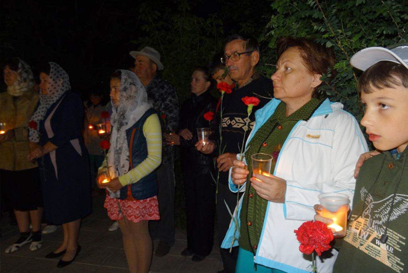 В предрассветный час собравшиеся просили упокоения душам всем погибшим в этой кровопролитной войне. Свою скорбь по погибшим адамовчане также выразили чтением стихов и возложением цветов и свечей к памятнику солдату-победителю. Утром в храме Покрова Пресвятой Богородицы на Божественной литургии вновь были помянуты все, кто ценою своей жизни отстоял свободу и независимость нашей Родины.