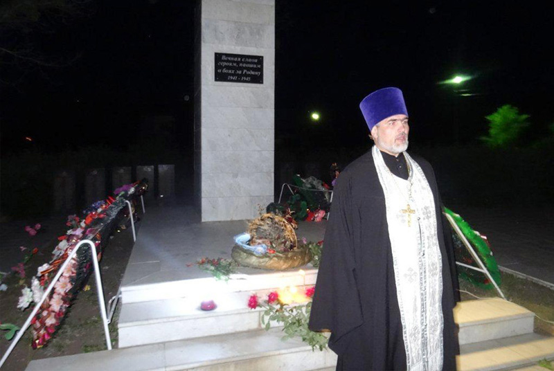 АДАМОВКА. 22 июня 2014 г. В день начала Великой Отечественной войны благочинный Адамовского округа иерей Вячеслав Кочкин совершил панихиду в парке Победы посёлка Адамовки по погибшим в войне.