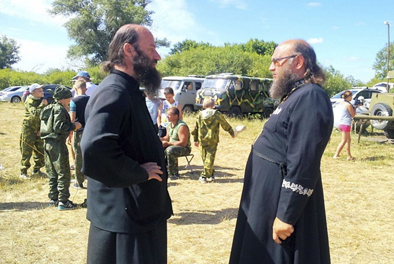 НОВООРСК. 30 июня 2014 г. По благословению Преосвященнейшего Иринея, епископа Орского и Гайского, благочинный Гайского округа, настоятель кафедрального собора святого праведного Иоанна Кронштадтского г. Гая протоиерей Игорь Никифоров, руководство Гайского хуторского общества: атаман Владимир Комаров и начальник штаба Вадим Евсеев - посетили детский палаточный лагерь военно-патриотического клуба «Русские богатыри».