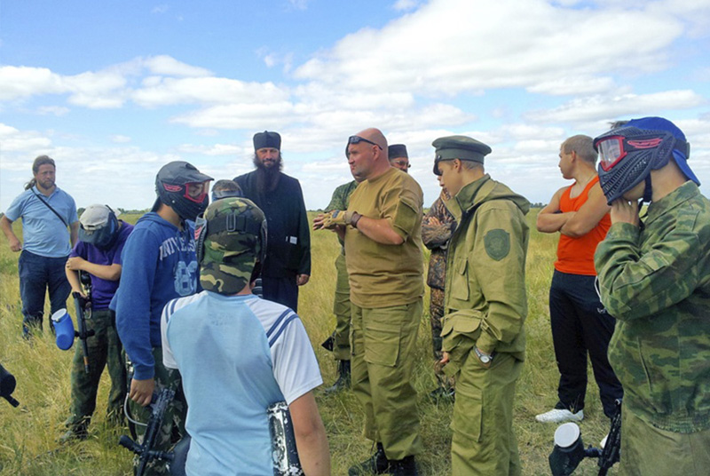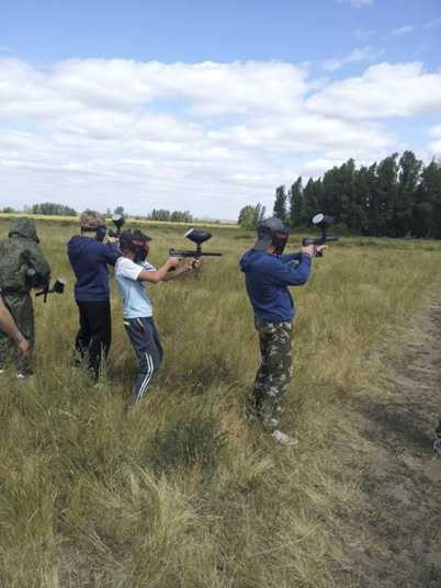 Прошло четыре дня со дня открытия детского палаточного лагеря военно-патриотического клуба «Русские богатыри», духовное руководство которого осуществляет иеромонах Павел (Чуешков), настоятель храма Казанской иконы Пресвятой Богородицы п. Новоорска. Весь лагерь живет одной душой – вместе ест, в равных условиях спит, в одно время встает и ложится. Владыка Ириней часто посещает палаточный лагерь, совершает здесь Божественную литургию, исповедует и причащает ребят. В день нашего приезда владыка также находился у ребят. Сегодняшний визит гостей необычный: для ребят проводилось практическое занятие по игре в пейнтбол. В переводе с английского языка название этой игры означает «шар с краской», а сам пейнтбол – командная игра, в которой при помощи специального оружия (маркера) необходимо поразить игроков команды соперников. При попадании шарика в экипировку или оружие игрок покидает свою команду. При этом он обязан поднять руку, а затем и маркер стволом вверх. Отец Павел выбрал местность для игры, сформировал четыре команды. Какой мальчишка не любит играть в войну? Инструктаж по технике безопасности, основам игры провёл начальник штаба Вадим Евсеев, который руководит секцией по игре в пейнтбол в городе Гае. Ребята разделились на две команды, получили экипировку. Каждая команда заняла свою позицию. Задача команд – захватить «флаг» при минимальной потере игроков. За игрой следили инструкторы Вадим Евсеев и Владимир Комаров, они объявляли о начале и конце игры. Конец боя, игра прошла успешно. Как всегда победила дружба! Приятно осознавать, что это только игра, а «пули» - лишь шарики с краской. Эмоции переполняли ребят. Будущие защитники Отечества возвратились в палаточный лагерь. Мы были рады, что эта игра доставила ребятам только положительные и незабываемые эмоции и впечатления.