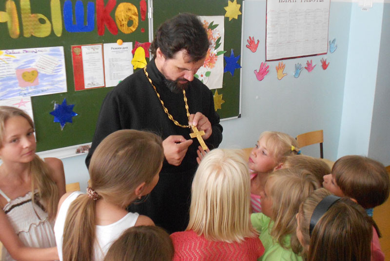 МЕДНОГОРСК. 21 июня 2012 г. Настоящим национальным бедствием современной России стали курение, алкоголизм и наркотики. По просьбе администрации летнего школьного лагеря средней школы № 5 благочинный Медногорского округа иерей Сергий Кваша провел беседы с детьми, отдыхающими в школьном лагере, на тему: «Профилактика детской преступности. Курение, алкоголизм, наркомания».