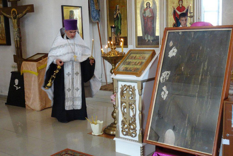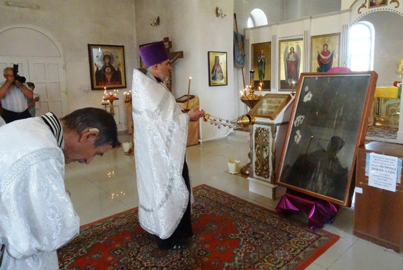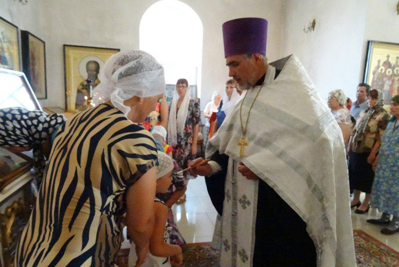 АДАМОВКА. 7 июля 2014 г. В праздник Рождества честного славного Пророка, Предтечи и Крестителя Господня Иоанна благочинный Адамовского округа, настоятель храма Покрова Пресвятой Богородицы п. Адамовки иерей Вячеслав Кочкин совершил Божественную литургию.