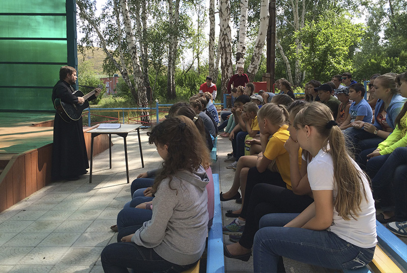 Лето – это самое время для отдыха. Сейчас идут каникулы у школьников и многие юные медногорцы отдыхают в летних лагерях. Отец Андрей навестил ребят. В каждом лагере батюшку встретили у самого входа директор и вожатые, которые организовали для священника экскурсию и провели его по территории мест отдыха. В это время возле эстрады дети собирались для того, чтобы принять участие в духовной беседе со священником. Разговор шел о храме (для чего нужно ходить в храм, посещать богослужения), о милосердии, о терпении, о послушании. Беседы сопровождались песнями-притчами из репертуара Светланы Копыловой, которые батюшка исполнил для детей под гитару. После оживленной беседы многие ребята и воспитатели подходили к батюшке с личными вопросами. По окончании бесед в каждом лагере отец Андрей благословил всех, поблагодарил за теплую встречу и пожелал детям хорошего отдыха.