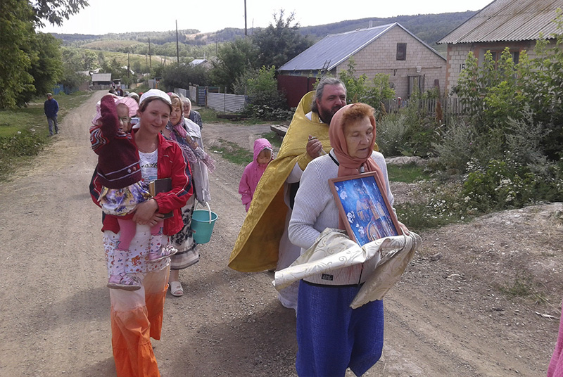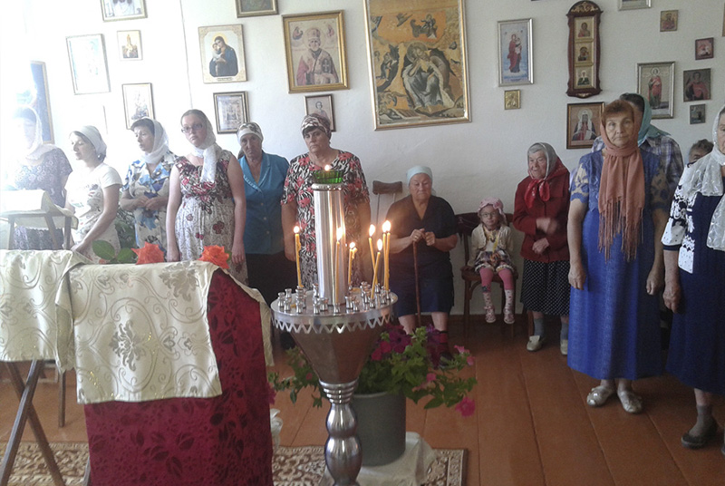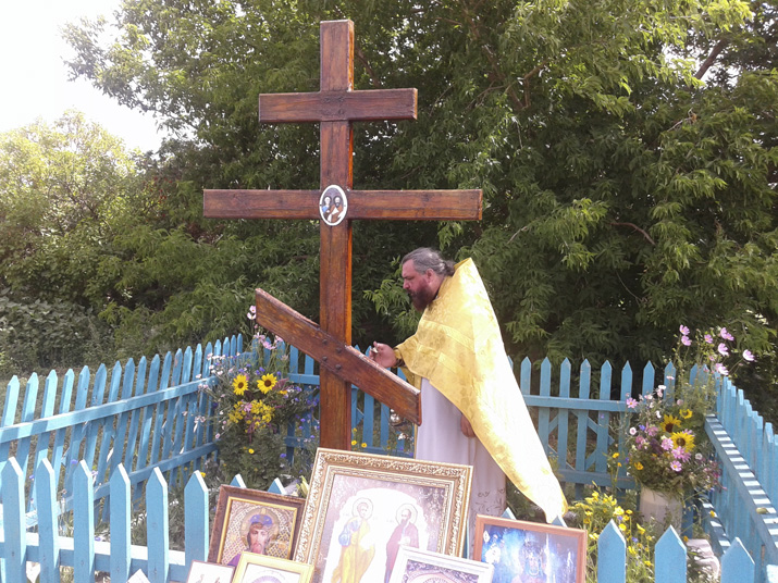 В этот день у селян престольный праздник – первоверховных апостолов Петра и Павла. Отец Антоний отслужил Божественную литургию Иоанна Златоустого. По окончании богослужения священник возглавил крестный ход по селу с пением тропаря святым первоверховным апостолам Петру и Павлу. У Креста Господня, где когда-то стояла церковь, была совершена заупокойная лития. Возвратившись в молебный дом, о. Антоний поздравил селян с престольным праздником и пожелал всем с великим благодушием переносить скорби. Апостол Павел говорил, что многими скорбями надлежит нам войти в Царство Небесное, скорбями душа очищается.