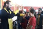 Открытие смены началось с молебна о призывании помощи Святаго Духа перед началом всякого доброго дела. Клирик собора иерей Олег Соболевский благословил ребят, рассказал им о важности молитвы и призывании помощи Божией в своих делах.