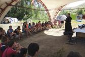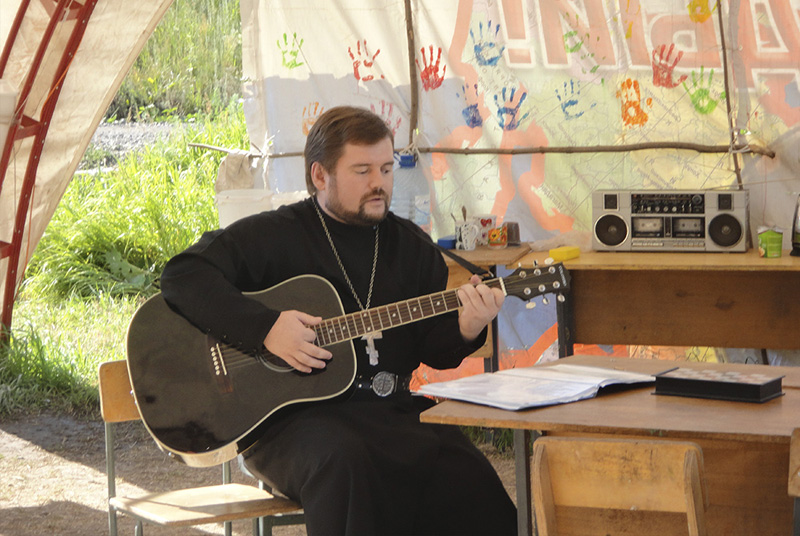 В лагере отдыхают медногорские школьники в возрасте от 8 до 16 лет. Во время беседы с жителями лагеря батюшка затронул темы евангельского учения: отношений человека с ближними, с Богом, любви человека к Отечеству земному и небесному. Рассказ батюшки сопровождался исполнением под гитару песен-притч Светланы Копыловой, тексты которых также отображают евангельские истины. По сложившейся традиции в конце беседы отец Андрей ответил на вопросы присутствующих, благословил всех, поблагодарил за теплую встречу и пожелал детям хорошего отдыха.