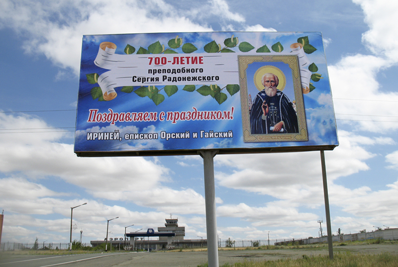 ОРСК. 18 июля 2014 г. По благословению Преосвященнейшего Иринея, епископа Орского и Гайского, сотрудники информационно-издательского отдела Орской епархии (рук. Татьяна Базилевская) организовали изготовление и установку баннера, посвященного 700-летию со дня рождения преподобного Сергия Радонежского.