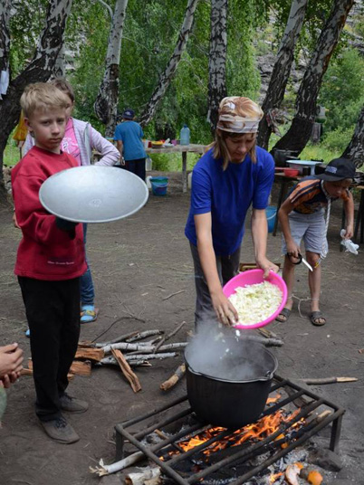 КАРАГАЙ-ПОКРОВКА. 14 июля 2014 г. Руководитель отдела по делам православной молодежи священник Максим Бражников по приглашению представителей Оренбургского отделения Братства православных следопытов (БПС) посетил детский лагерь в Карагай-Покровке.