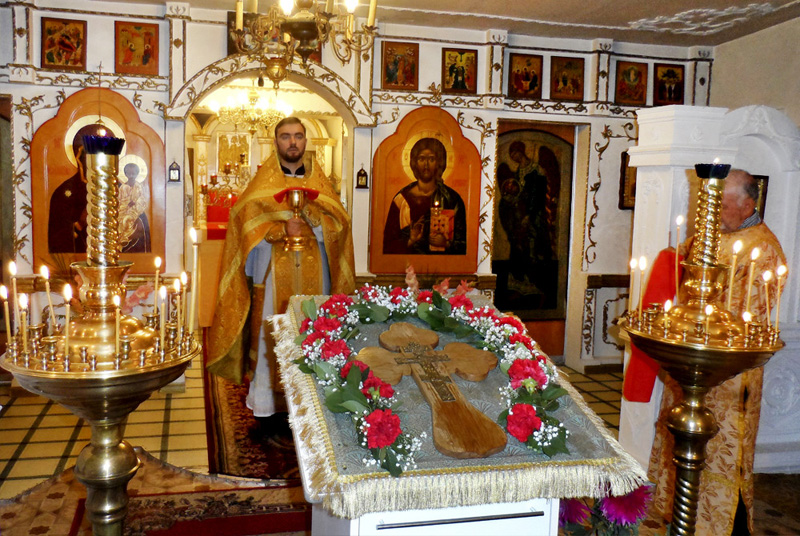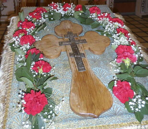В канун праздника, на утрени, во время пения Великого славословия из алтаря на середину храма священник совершил вынос Креста для всеобщего поклонения.