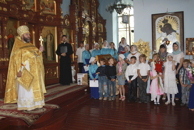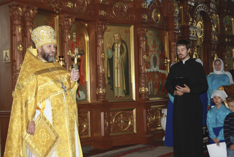 Все присутствующие в храме с большим вниманием слушали учеников школы, которые рассказывали об основных этапах жизни любимого настоятеля, а детский хор исполнил для батюшки песню «Пастырь Добрый». Было видно, что о.Анатолий очень тронут проявлением такой любви и внимания к нему. Он рассказал о первых годах своего служения в Украине, о том, что события в те годы тесно перекликаются с нынешними, поблагодарил всех за помощь и поддержку.