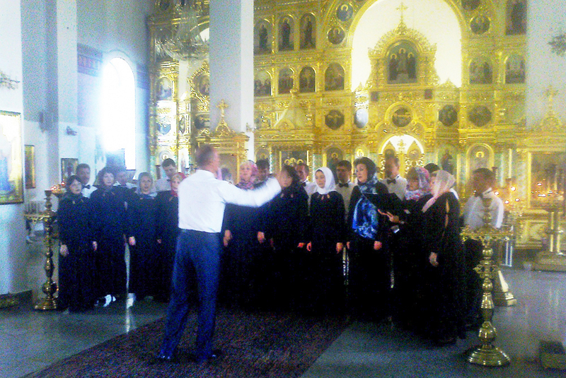 НОВОТРОИЦК. 19 августа 2014 г. В соборе свв. апп. Петра и Павла г. Новотроицка в день Преображения Господня после Божественной литургии перед прихожанами с духовными песнопениями выступил Новотроицкий муниципальный камерный хор.