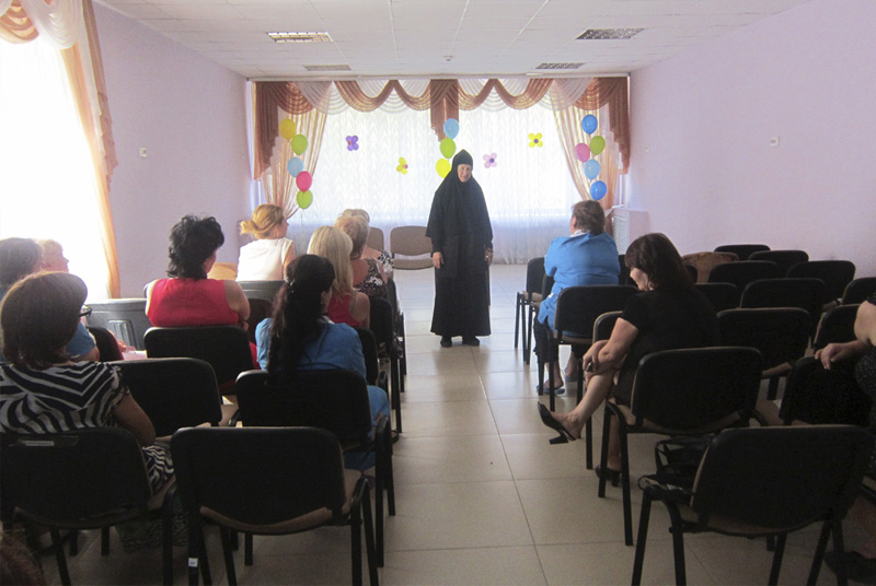 Чуть позже в этот же день гостья из Белоруссии, инокиня Минского Свято-Елисаветинского монастыря матушка Мария (Литвинова), приехала в Центр для встречи и беседы на духовные темы с педагогами приюта. А на другой день матушка беседовала с воспитанниками приюта.
