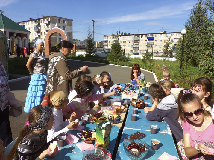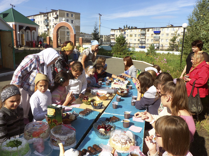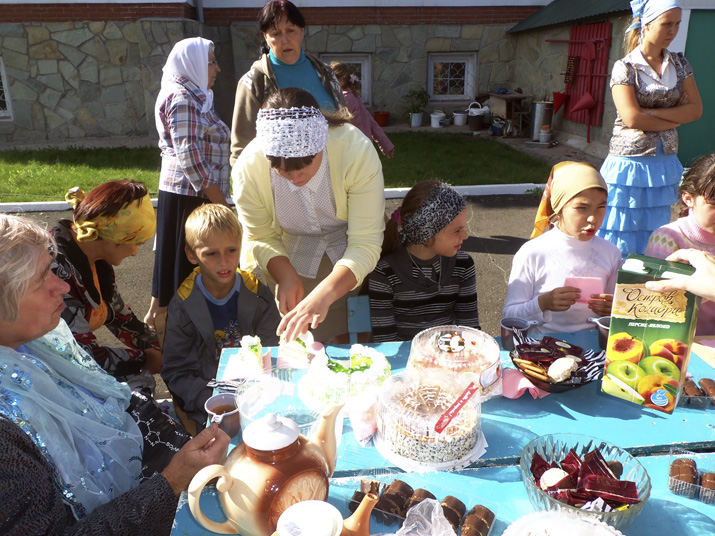 В заключение всех ребятишек и взрослых угощали сладостями и горячим чаем.