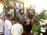 За богослужением вместе с настоятелем храма молились и причащались Святых Христовых Таин много детей-школьников (около 80 человек) и несколько педагогов города Медногорска.