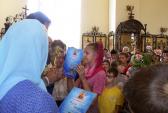 Далее батюшка вместе с начальником Медногорского отдела образования Ольгой Норцевой отметил воспитанников воскресной школы, которые особенно хорошо потрудились в прошлом учебном году. Под пение слов «Аксиос» им были вручены благодарственные грамоты.