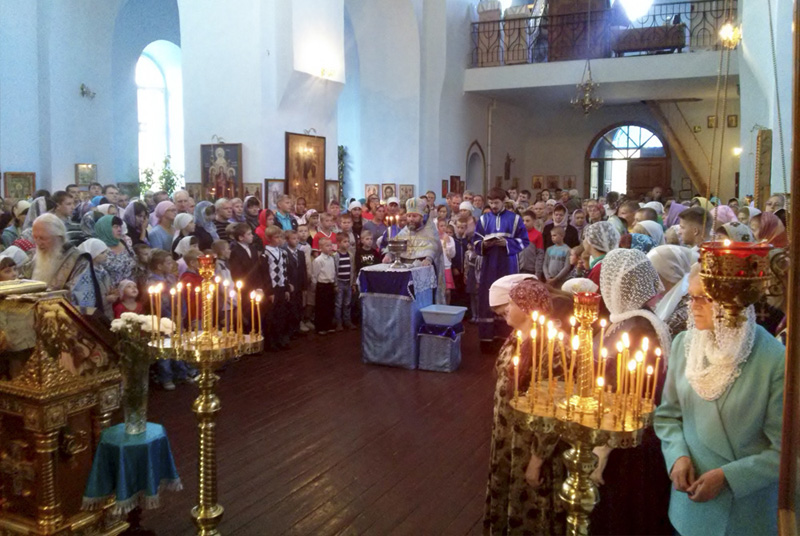 За Божественной литургией в храме собралось множество детей разного возраста. Молебен на начало учебного года настоятель храма протоиерей Анатолий Сопига служит уже много лет, и стало доброй традицией соборно помолиться об успешной учебе. В храм пришли ученики воскресной школы, студенты, педагоги, ученики общеобразовательных школ города и родители.