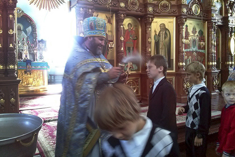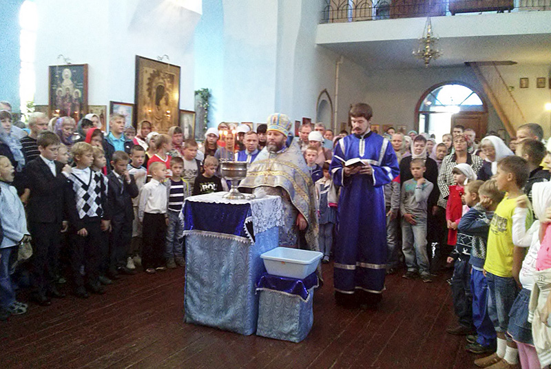 ОРСК. 31 августа 2014 г. В храм Покрова Пресвятой Богородицы (бывшего монастыря) г. Орска множество ребят разного возраста пришли с родителями помолиться об успешной учебе.