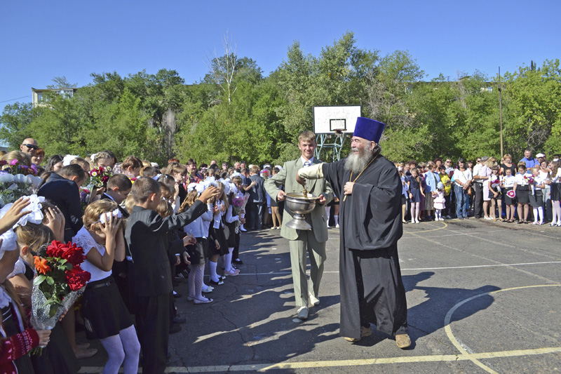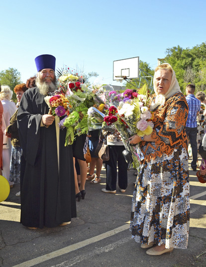 Первое сентября - День знаний. С самого утра взрослые и дети в приподнятом настроении. Лица первоклассников светятся от улыбок. Сегодня они стали большими - идут в школу. Повсюду море ярких цветов. Добрые пожелания слышатся со всех сторон. Ребята радостно общаются друг с другом, а родители немного нервничают в ожидании начала линейки. Но вот зазвучала музыка и праздник начался. Громкими аплодисментами школа встречает своих старшеклассников – будущих выпускников, 11 класс, а затем первоклашек. Малыши робко шагают за своими учителями, неся огромные букеты цветов. По приглашению администрации школы № 2 п. Энергетик поздравить с праздником учащихся пришел настоятель храма святого великомученика и Победоносца Георгия иерей Алексий Новиков. Священник обратился к учащимся с напутственным словом, пожелал успехов в учебе и творчестве, а также преподнес в дар школьной библиотеке духовную литературу. Завершая свое поздравление, настоятель иерей Алексий благословил всех учащихся и окропил святой водой. Особенностью нового учебного года стал набор в первые классы. Впервые за последние годы за парты село 60 первоклашек, а всего в торжественной линейке приняло участие 400 школьников. Дети с большой радостью приняли подарки и поздравление и в знак благодарности преподнесли батюшке и матушке прекрасные букеты цветов.