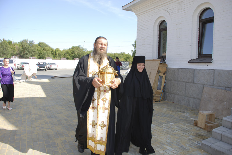 Задолго до приезда ковчега у храма собрался народ, в радостном нетерпении ожидая его прибытие. В собор святыню доставили старшая сестра Иверской женской обители Ксения (Пашкова) и монах Филарет (Давыдов). Их встречал секретарь Орской епархии, духовник монашеской общины, настоятель Свято-Георгиевского собора протоиерей Сергий Баранов. Все желающие с благоговением приложились к святыне, затем проследовали в храм, где пред ковчегом с частицей мощей преподобного Сергия был совершен молебен.