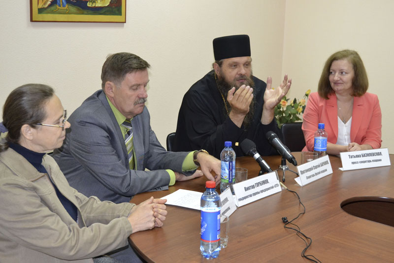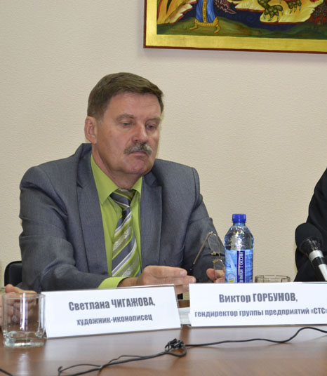 В зале заседаний в Торгово-деловом центре «Ленком» по благословению Преосвященнейшего Иринея, епископа Орского и Гайского, пресс-служба Орской епархии собрала журналистов. Руководитель информационно-издательского отдела, пресс-секретарь епархии Татьяна Базилевская представила главных участников собрания. Это секретарь Орской епархии, настоятель кафедрального собора св. вмч. и Победоносца Георгия г. Орска, духовник женского монастыря во имя иконы Божией Матери «Иверская» протоиерей Сергий Баранов; меценат, благотворитель, награжденный РПЦ орденом преподобного Сергия Радонежского, генеральный директор фирмы «СТС» Виктор Горбунов и Светлана Чигажова - художник-иконописец, участница росписи кафедрального собора.