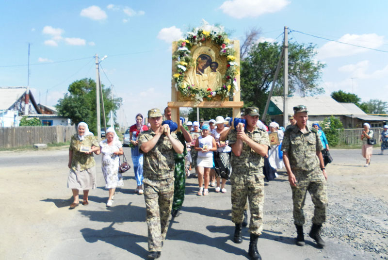 После Божественной литургии и молебна в честь иконы Табынской Божией Матери прихожане храма Преображения Господня во главе с настоятелем иереем Владимиром Шеховцовым прошли крестным ходом по поселку. Активное участие в праздновании приняли пограничники заставы. Прихожане возносили свои молитвы в песнопениях Пресвятой Богородице. Жители п. Домбаровский встречали икону и поклонялись ей, подводили больных, прося Матерь Божию о помощи. Пресвятая Богородица, спаси нас!
